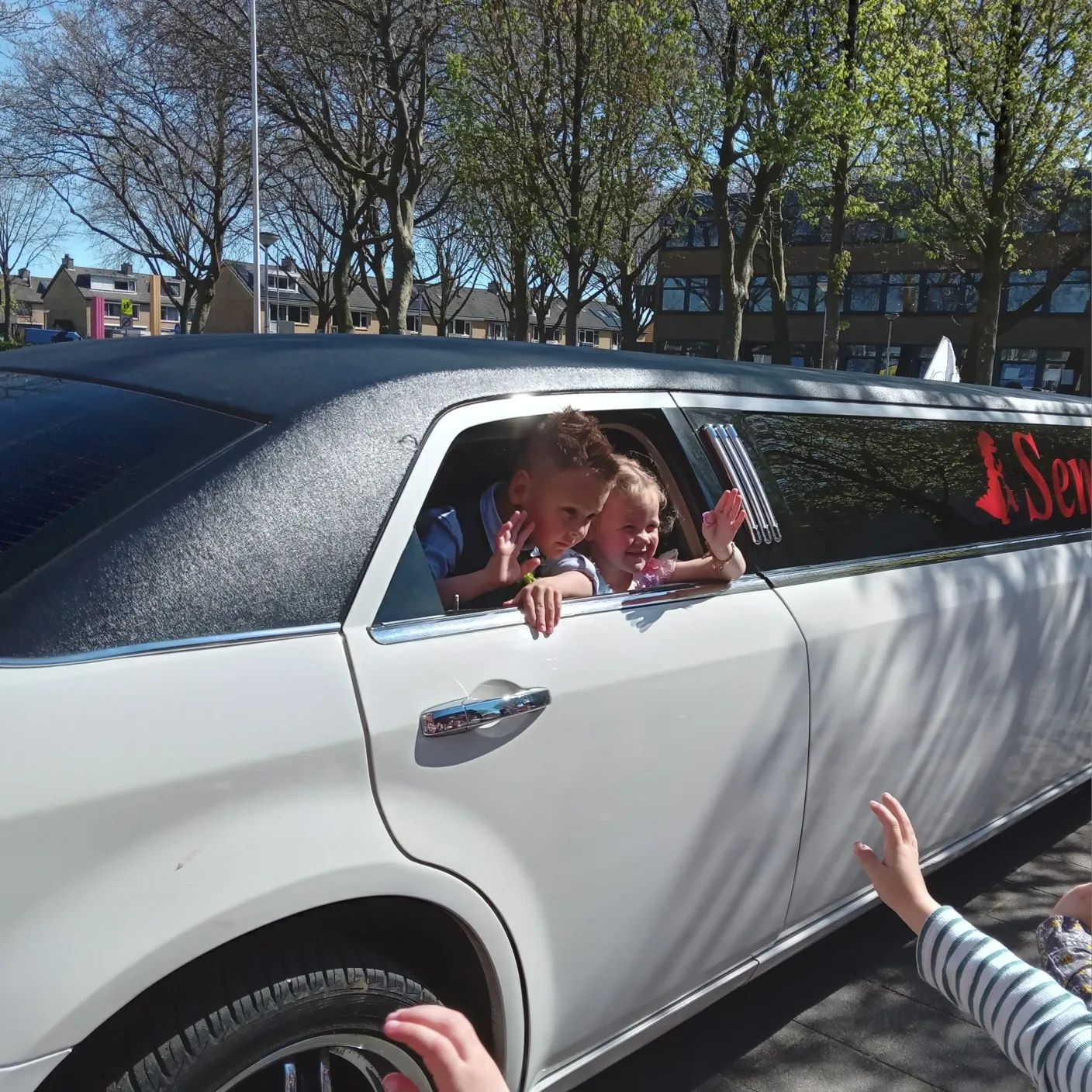 Een bijzondere dag voor Sem: zijn wens om met moeder te trouwen en daarna naar Dinoland te gaan is vandaag uitgekomen door Make a Wish. Sem (die het afgelopen jaar veel naar het ziekenhuis moest en waar het gelukkig momenteel goed mee gaat) kwam samen met zijn moeder bij ons IKC aan met een cabriolet. In de trouwzaal, waar familie, vrienden, klasgenoten en zijn juffen bij waren, vond de ceremonie plaats. De directeur was voor heel even de buitengewoon ambtenaar van de burgerlijke stand en hij mocht het huwelijk van Sem en zijn moeder voltrekken. Daarna kreeg moeder een ring en Sem een dinoketting, werd het trouwboekje getekend en was vader en zijn zusje de getuigen. Na de taart was het tijd om met een heuse limo naar Dinoland te gaan. Het was een bijzonder mooi moment.